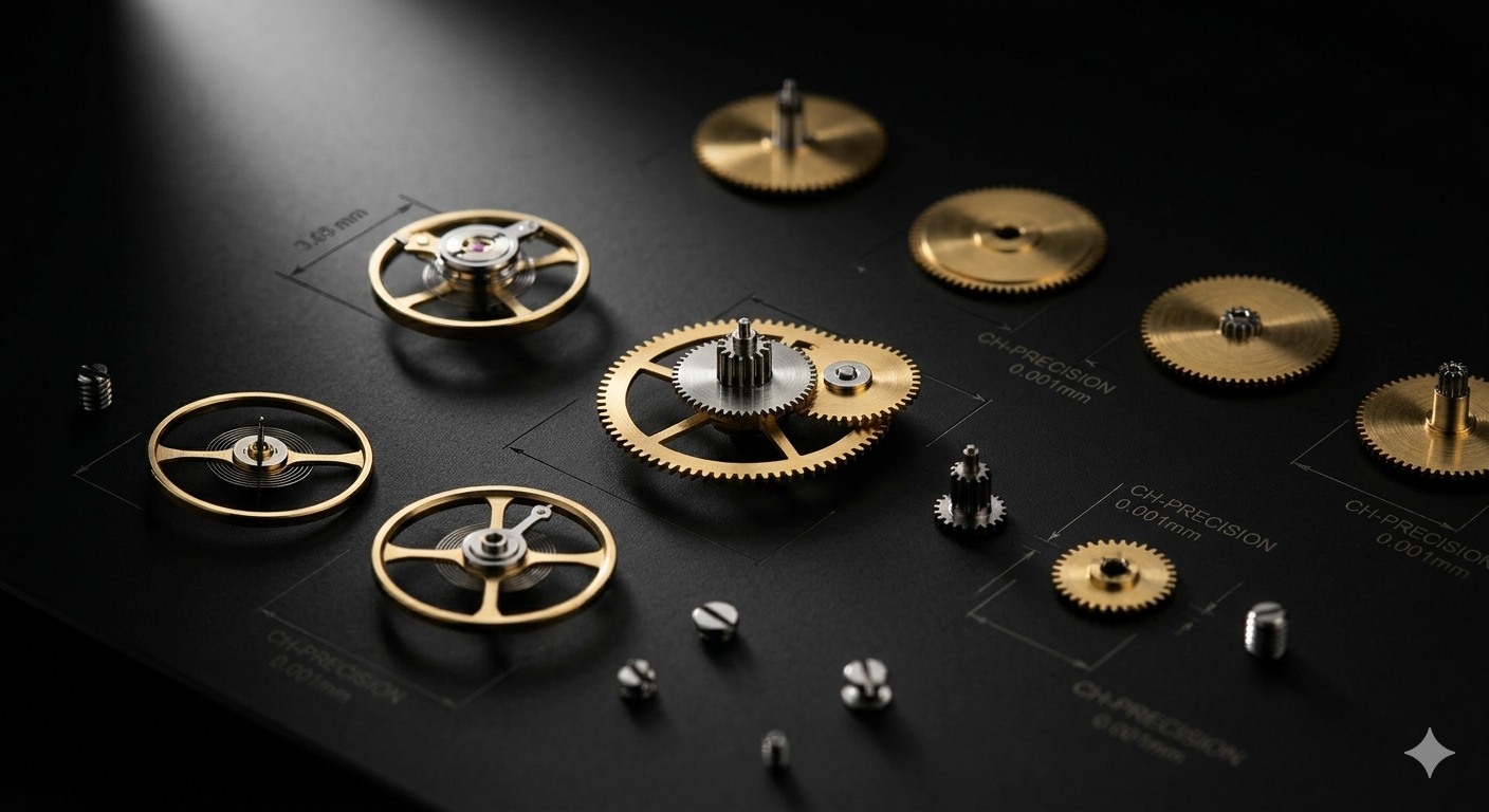 Usinage de composants de haute précision pour mouvements mécaniques : axes de balanciers, pignons et vis micrométriques. Nous maîtrisons les finitions irréprochables pour l'habillage haut de gamme.